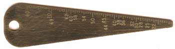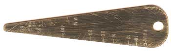 The Old Time Bore Gauge was copied from an original. Easy-to-read numbering. One side measures in calibers up to 80 cal., the other side measures gauge, (shotgun bore up) up to 10 gauge. Handy carry and use. Works best for muzzleloading guns. Made of Brass, 3 1/8" long.